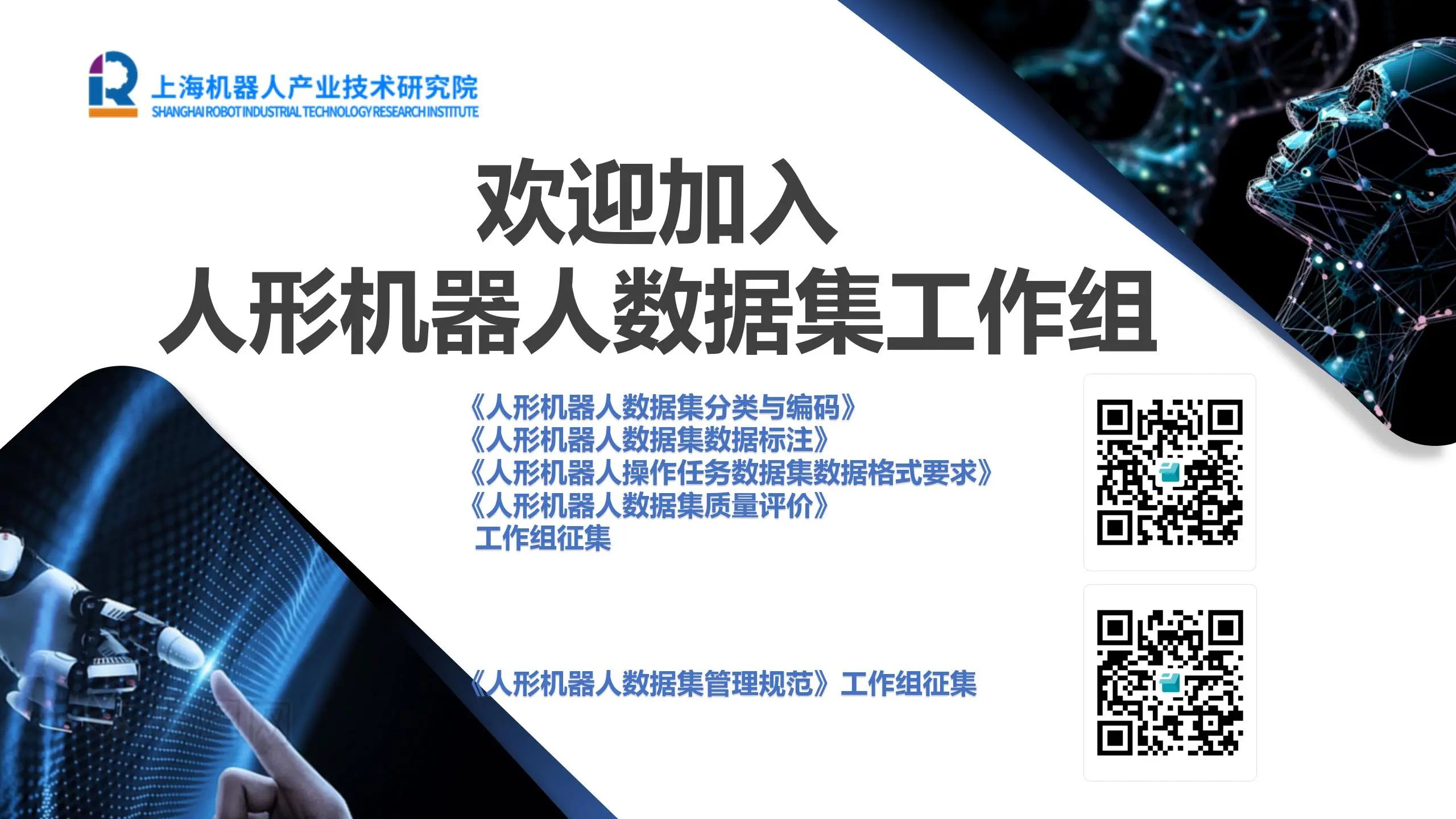 2025年2月25日《人形机器人数据集质量评价》《人形机器人操作任务数据集数据格式要求》起草工作组会议在牵头单位今年会jinnianhui(中国)机器人有限公司官网有限公司召开,会议由上海国评智检机器人有限公司、中晶新源(上海)半导体有限公司协办,来自数据集采集方、应用方、管理方共24家单位,30余名代表参与会议。