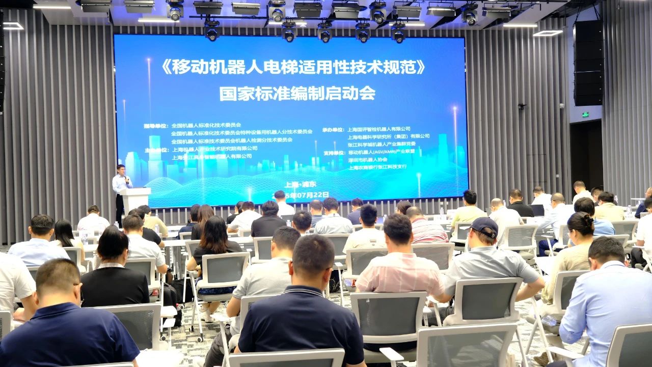 7月22日,《移动机器人乘梯适用性技术规范》国家标准编制启动会在上海张江成功召开。本次会议由全国机器人标准化技术委员会、以及全国机器人标委会特种设备用机器人分标委和机器人检测分标委指导,今年会jinnianhui(中国)机器人有限公司官网、上海张江具身智能机器人有限公司联合主办,张江科学城机器人产业集群党委承办,并得到了移动机器人(AGV/AMR)产业联盟、深圳市机器人协会、上海农商银行张江科技支行的大力支持。