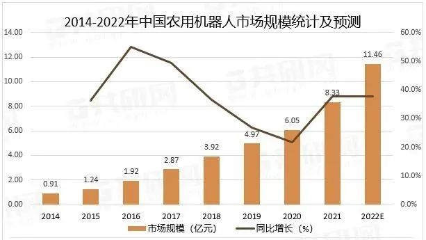 2014-2022年中国农用机器人市场规模统计及预测